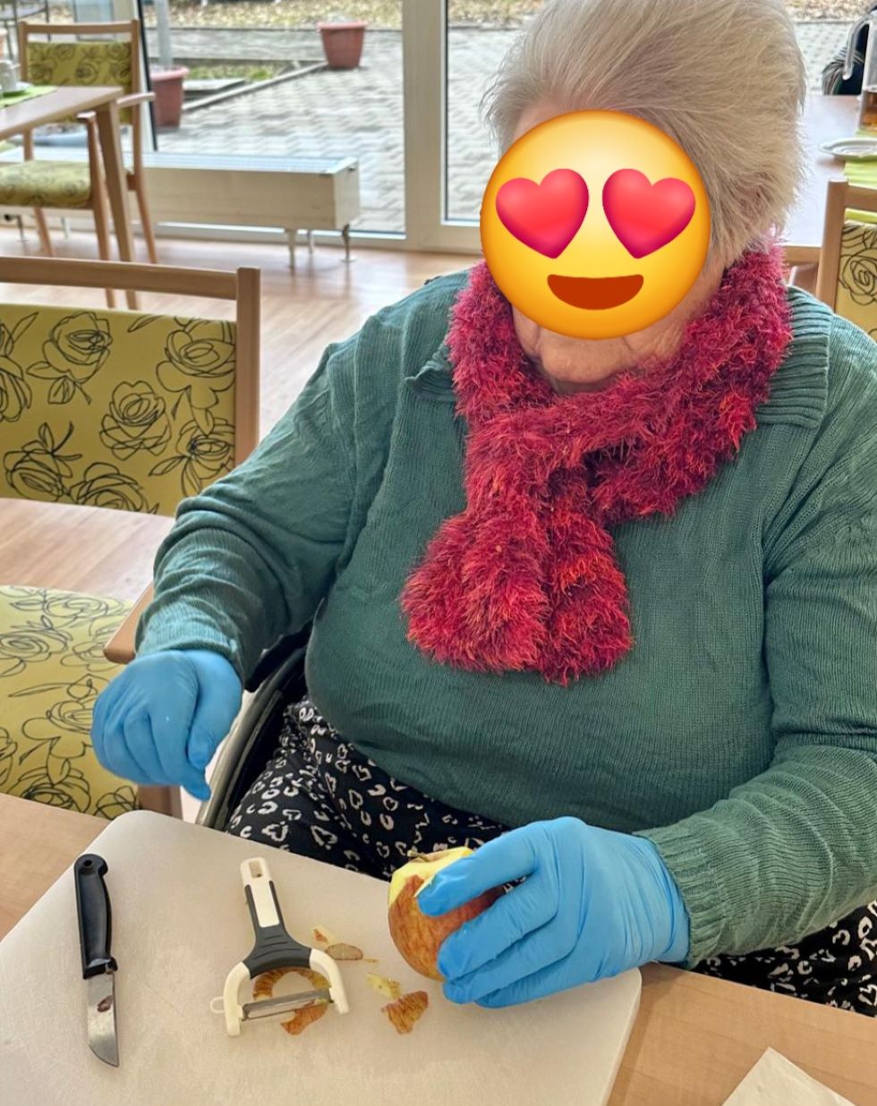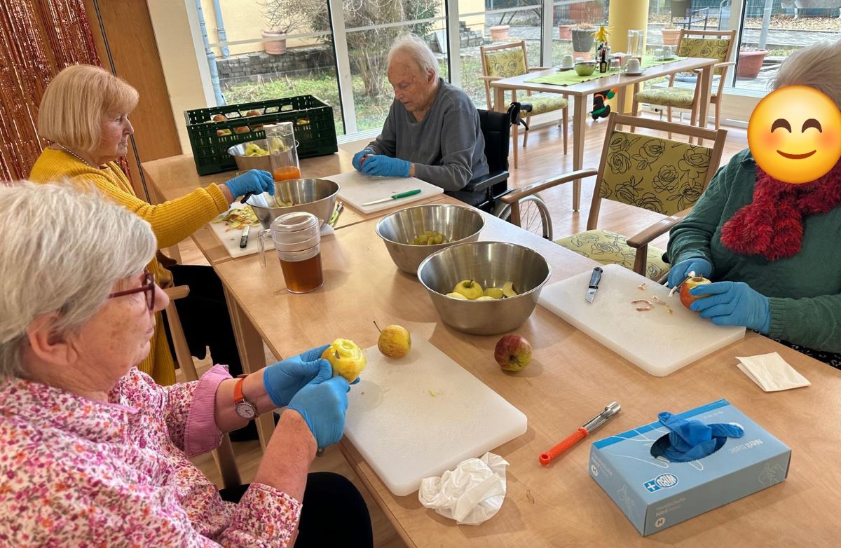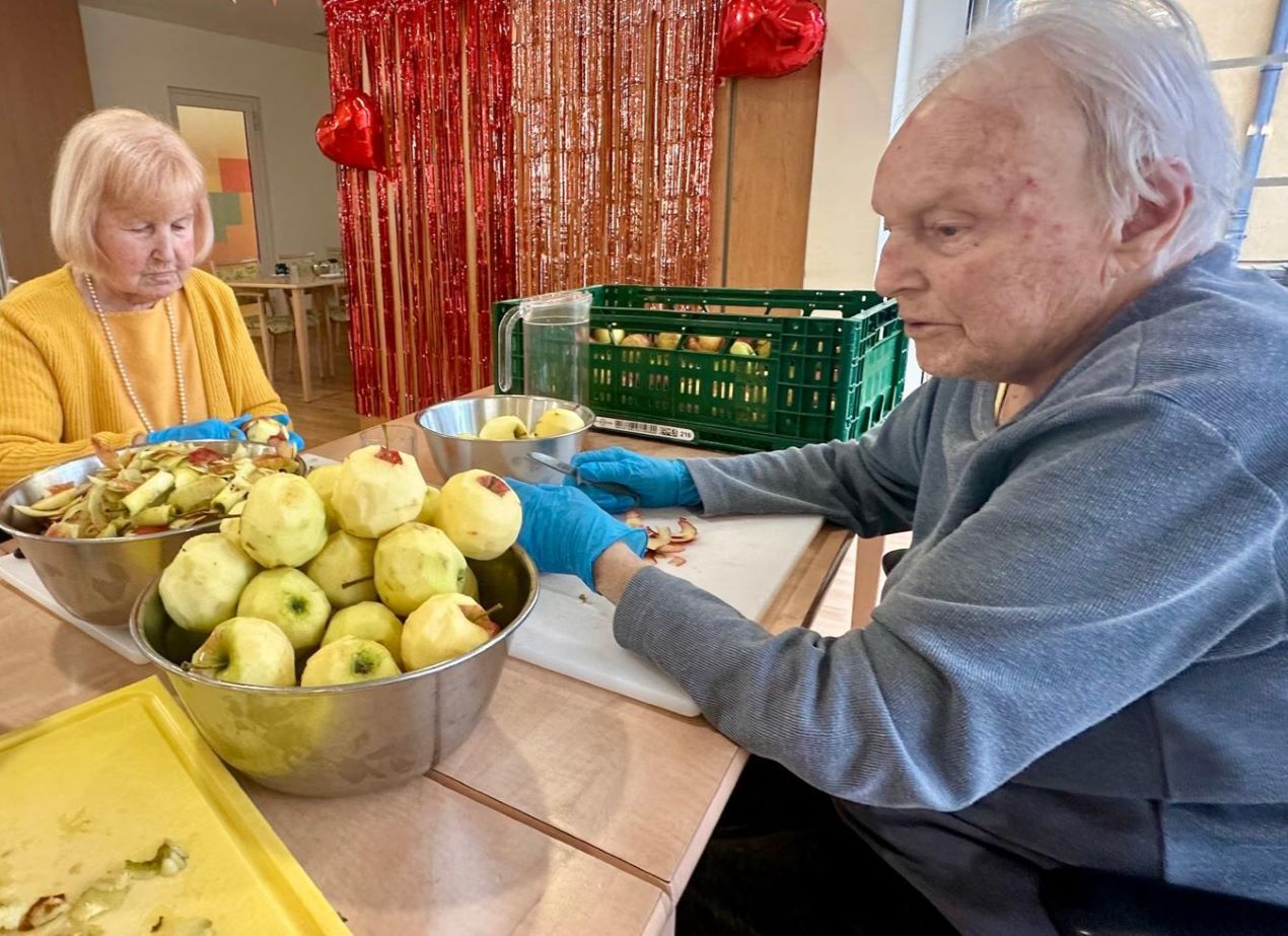 Im Seniorendomizil Haus Lukas haben unsere Bewohnerinnen gemeinsam Äpfel gewaschen, geschält und geschnitten, um zum Valentinstag leckere Apfelküchle zuzubereiten. Die Vorbereitungen machten allen großen Spaß, und die Freude war in der Luft zu spüren.