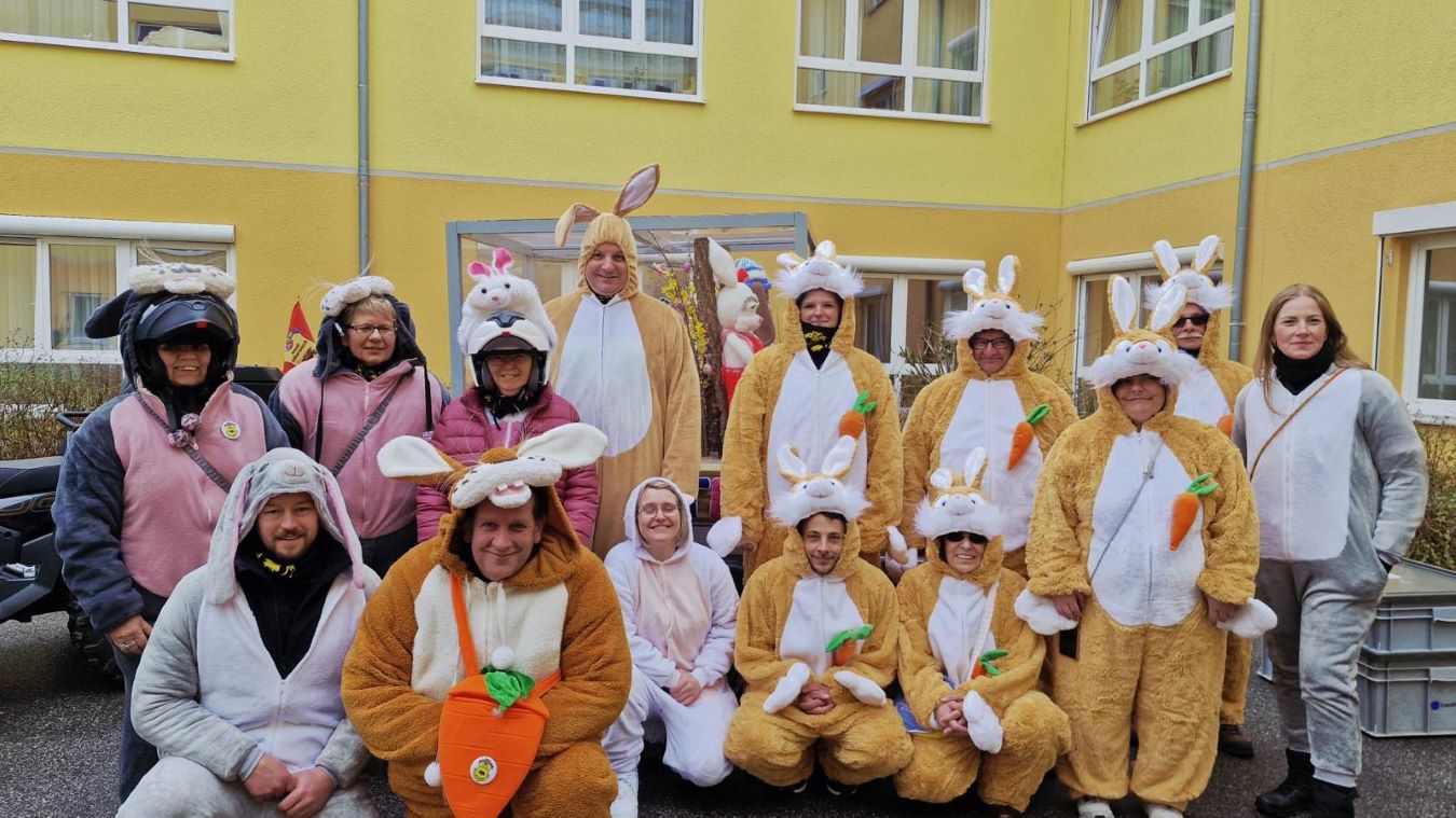 Eine ganz besondere Osterüberraschung erlebten die Bewohnerinnen und Bewohner der Seniorenresidenz Haus Urban: Die „Quadkameraden Oberpfalz e.V.“ kamen als Quadhasen verkleidet zu Besuch.