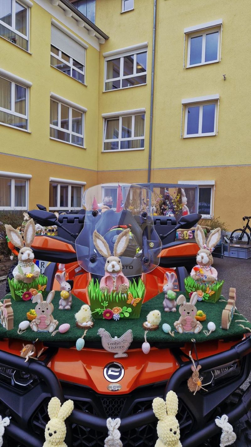 Mit ihren Quads sorgten sie nicht nur für staunende Blicke, sondern verteilten auch liebevoll gestaltete Osternester an unsere Bewohnerinnen und Bewohner.