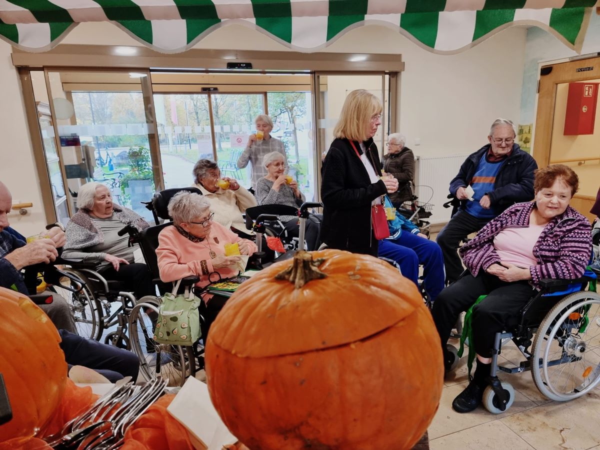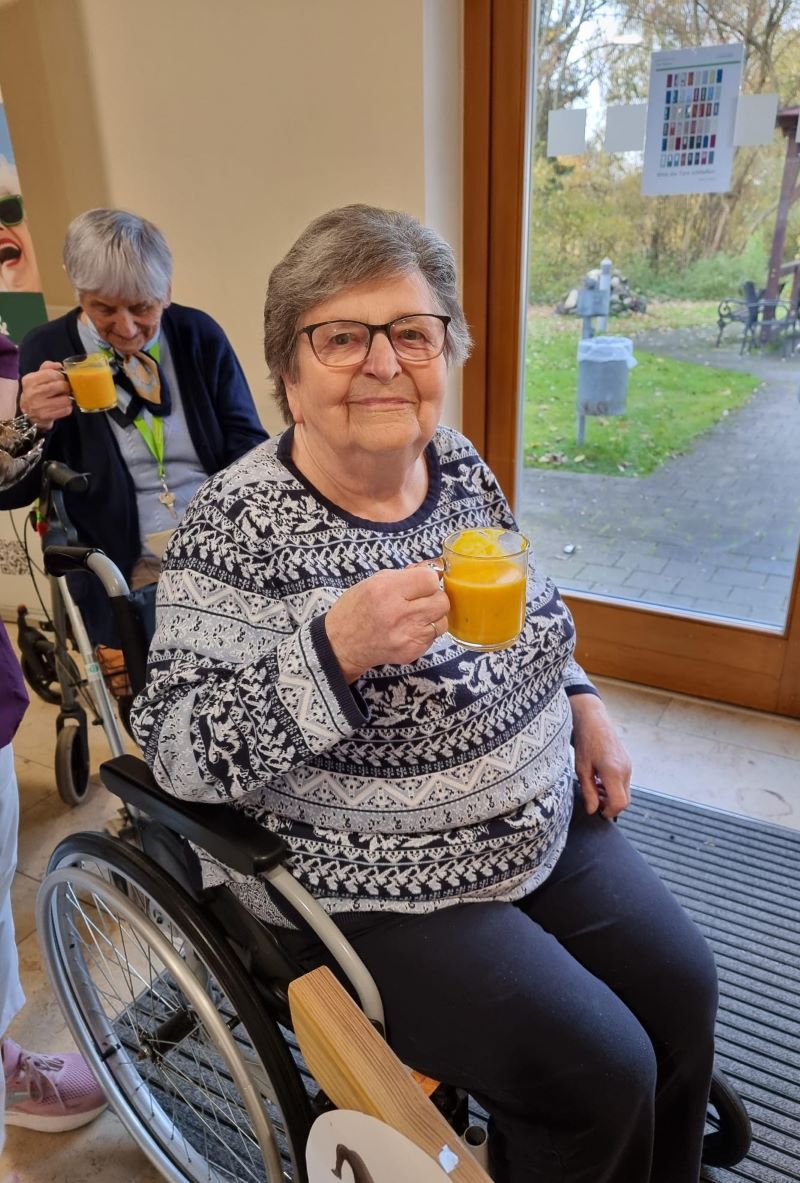 Schon im Vorfeld waren unsere Bewohnerinnen und Bewohner mit großer Freude dabei, eine köstliche Kürbissuppe zuzubereiten. Mit viel Eifer wurde geschält, geschnippelt und gerührt – das Ergebnis: warm, cremig und einfach himmlisch herbstlich!