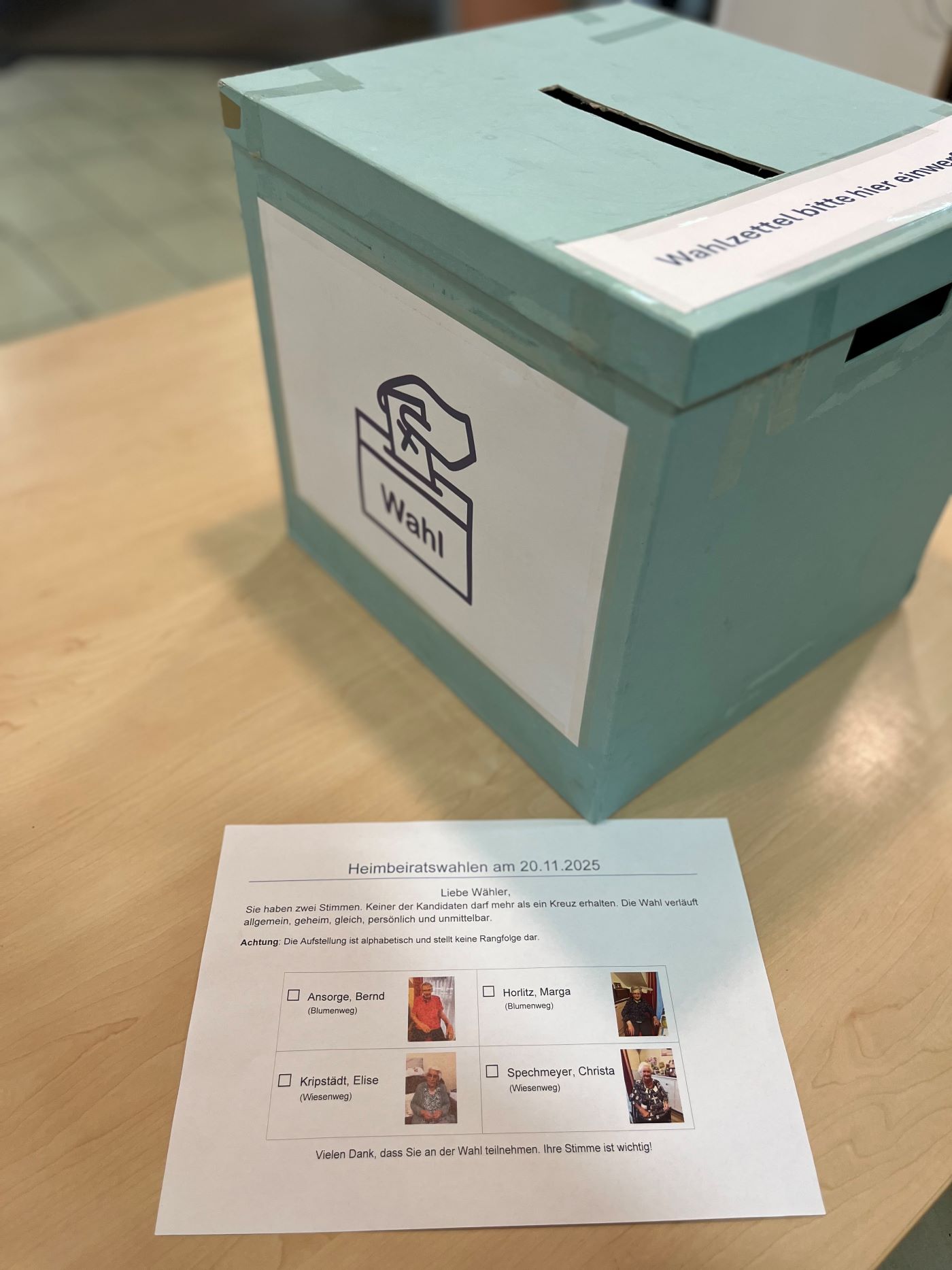 Gestern fand in unserer Seniorenresidenz Wesendorf die Wahl des Heimbeirats statt. Für die kommenden zwei Jahre wurde das neue Gremium bestimmt, das die Interessen unserer Bewohnerinnen und Bewohner vertreten wird.
