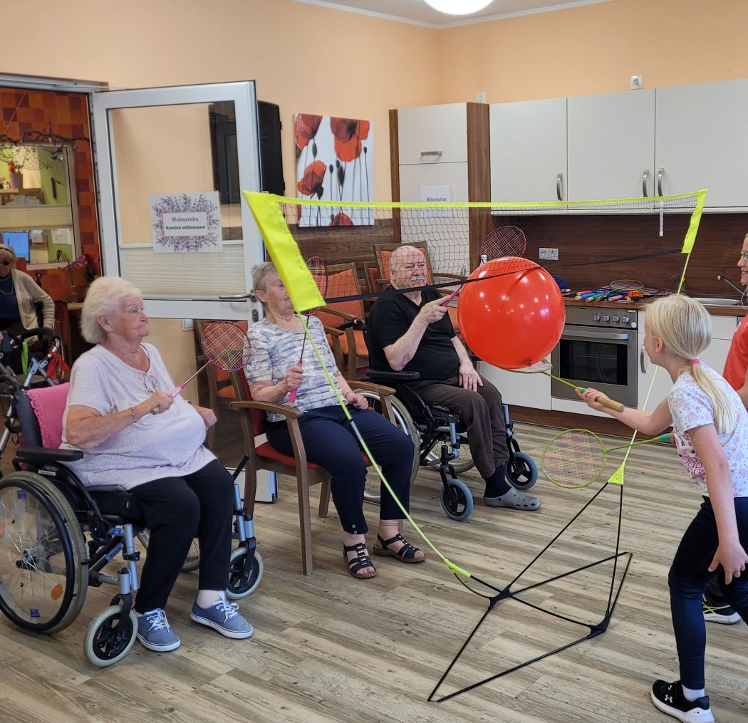 Die Ferienaktion in unserer Seniorenresidenz war ein fröhlicher und lebendiger Vormittag! Die Ferienkinder der Samtgemeinde kamen zu Besuch, um gemeinsam mit unseren Bewohnerinnen und Bewohnern „olympische Spiele“ zu spielen.