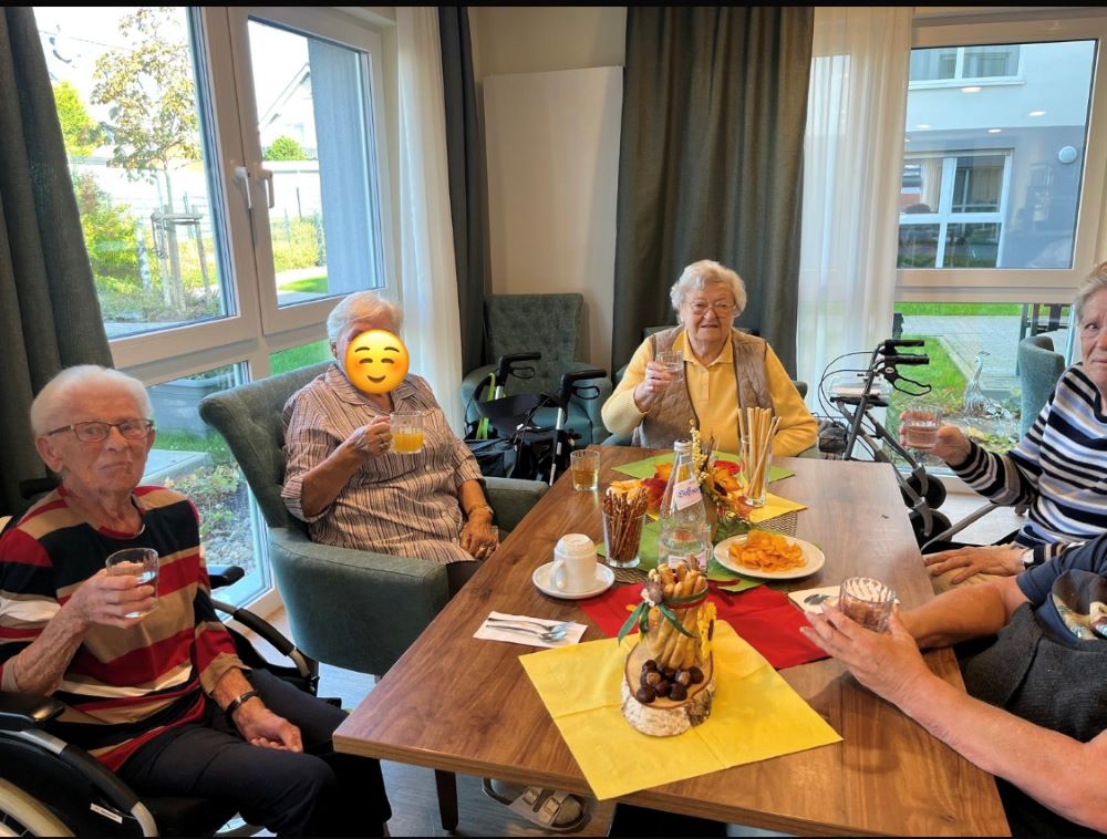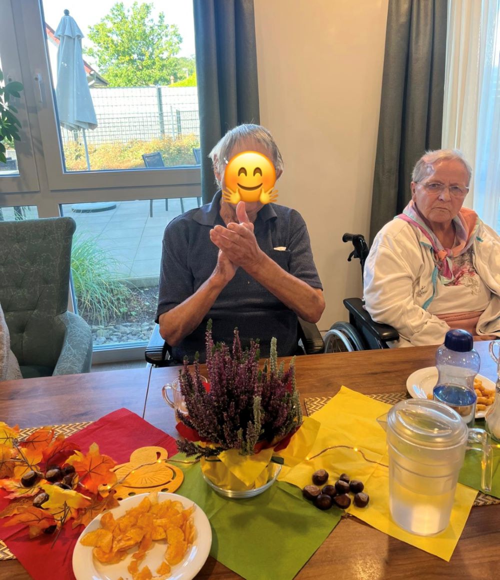 Alle Bewohnerinnen und Bewohner kamen im Restaurant der Einrichtung zusammen und genossen einen stimmungsvollen Nachmittag in geselliger Runde. Für das leibliche Wohl sorgten die Betreuungskräfte mit einem selbst gekochten Apfelpunsch, der wunderbar duftete und für wohlige Wärme sorgte. Dazu wurden herbstliche Kuchen wie Nuss-, Apfel- und Birnenkuchen gereicht – ein echter Genuss!