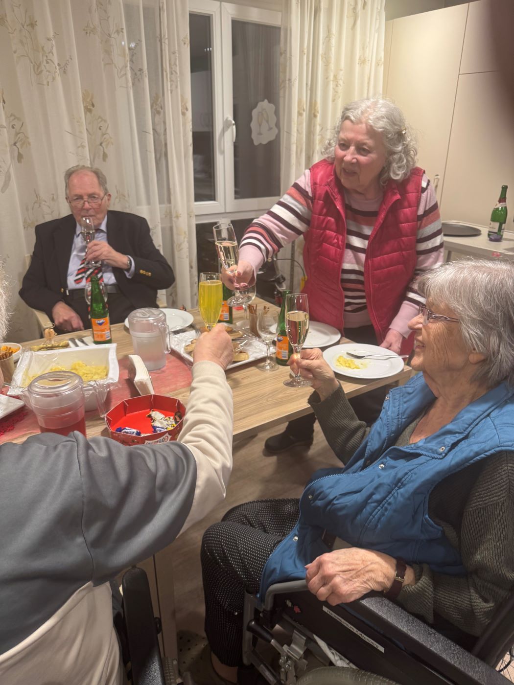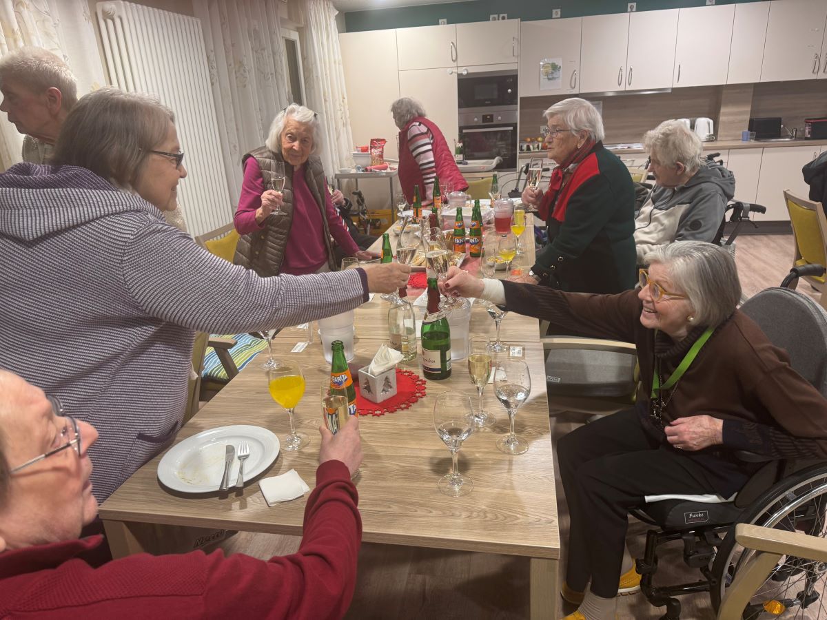 Im Seniorendomizil Am Grubenfeld wurde der Jahreswechsel in gemütlicher Gemeinschaft gefeiert. Bei Kartoffelsalat, Frikadellen und weiteren Leckereien genossen die Bewohnerinnen und Bewohner den Abend zusammen. Pünktlich um Mitternacht wurde vom Balkon mit Blick über die Stadt auf das neue Jahr angestoßen und das Feuerwerk bestaunt.
