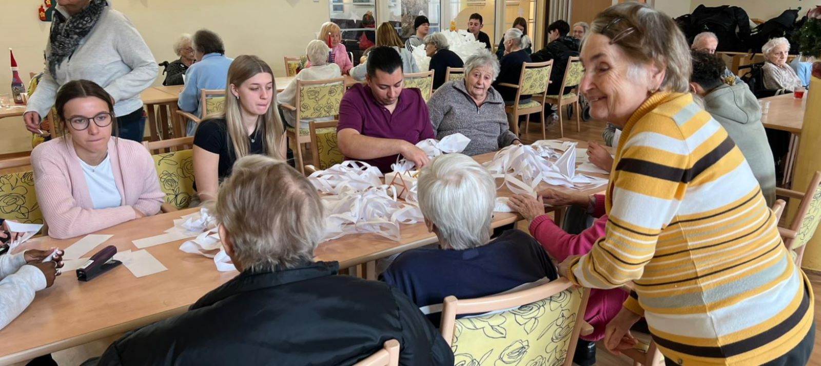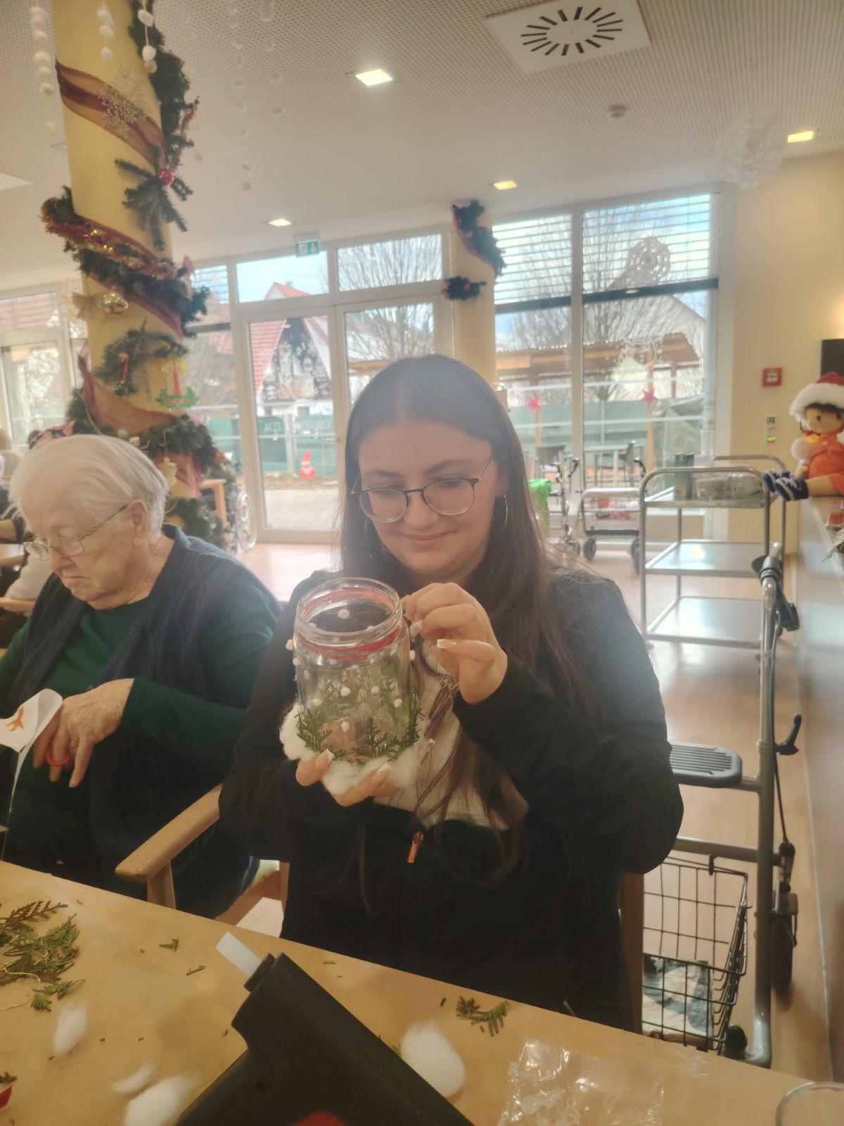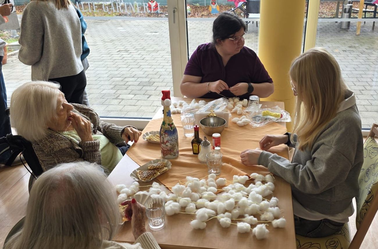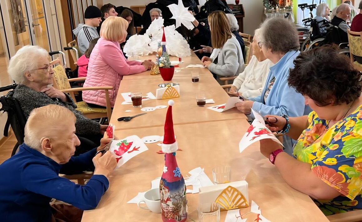 Am 17.12.25 durften wir im Seniorendomizil Haus Lukas 20 Schülerinnen und Schüler der Walter-Groz-Schule aus Albstadt-Ebingen begrüßen. Gemeinsam mit unseren Bewohnerinnen und Bewohnern wurde an verschiedenen Bastelstationen kreativ gearbeitet – es entstanden Sterne, Windlichter sowie kleine Weihnachtsmotive.
