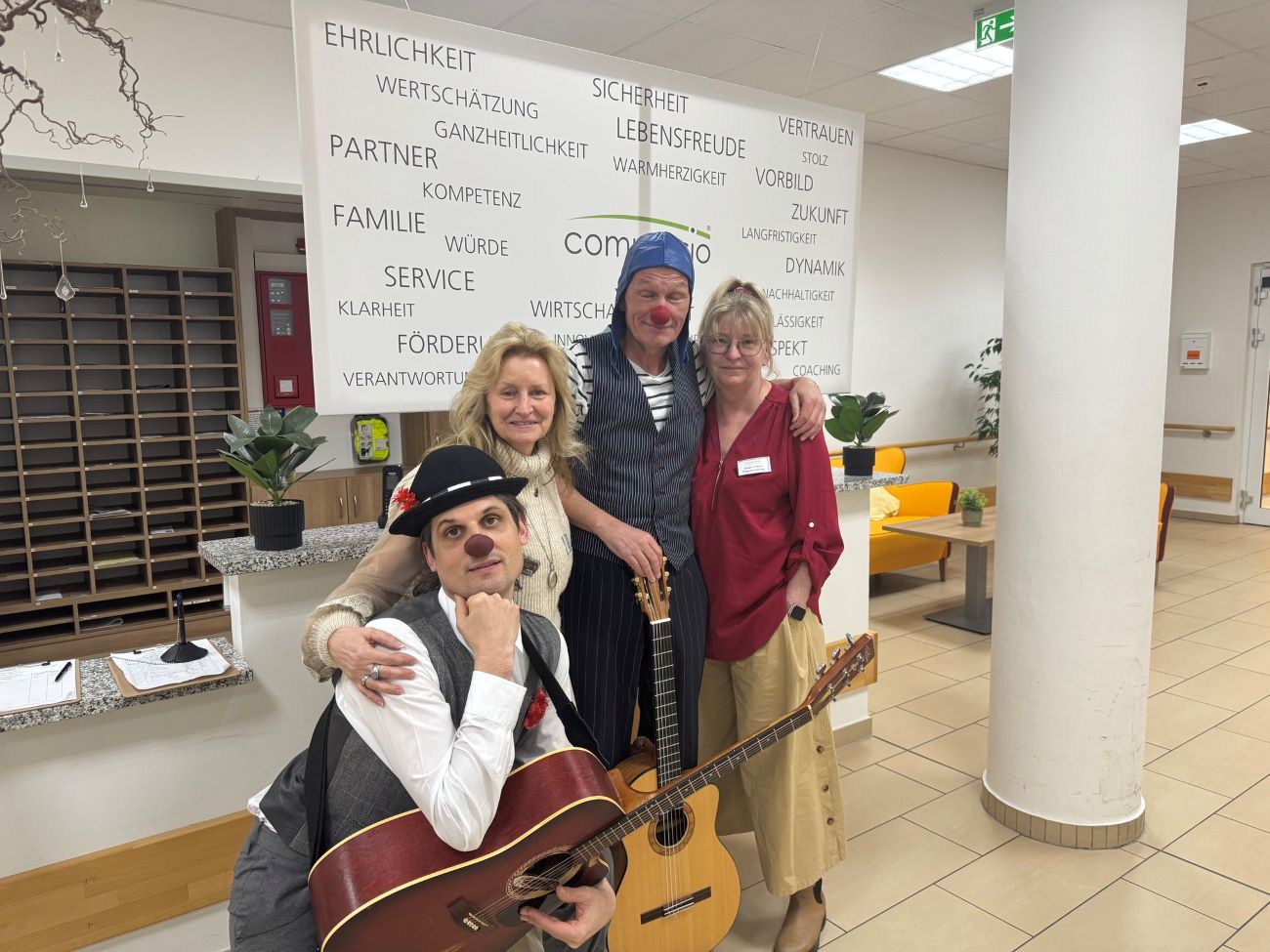 In der Wohnanlage Am Alten Stadttor dürfen wir uns regelmäßig über ganz besonderen Besuch freuen: die Rote Nasen Clowns.Schon beim Zuschauen wird deutlich, wie viel Freude, Leichtigkeit und Herzlichkeit sie mitbringen. Mit ihrem feinen Gespür für die Menschen zaubern sie unseren Bewohnerinnen und Bewohnern ein Lächeln ins Gesicht – und oft geht dabei auch uns allen das Herz auf.