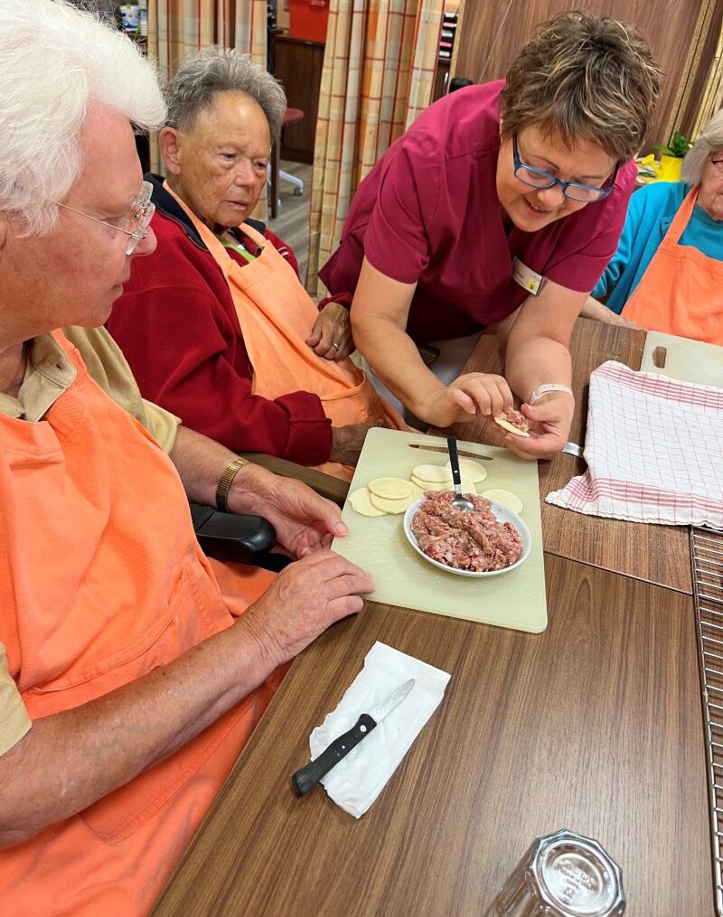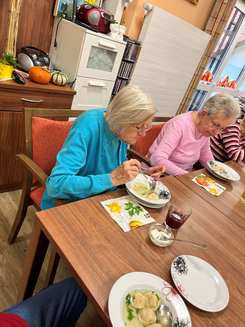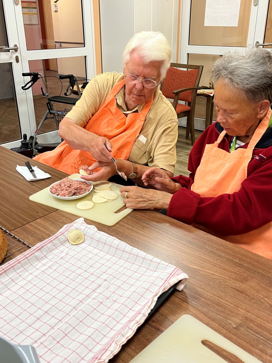 Unsere Bewohnerinnen und Bewohner hatten sichtlich Spaß beim Füllen, Formen und Kochen der Teigtaschen. Anschließend wurde das köstliche Ergebnis natürlich in gemütlicher Runde gemeinsam genossen.