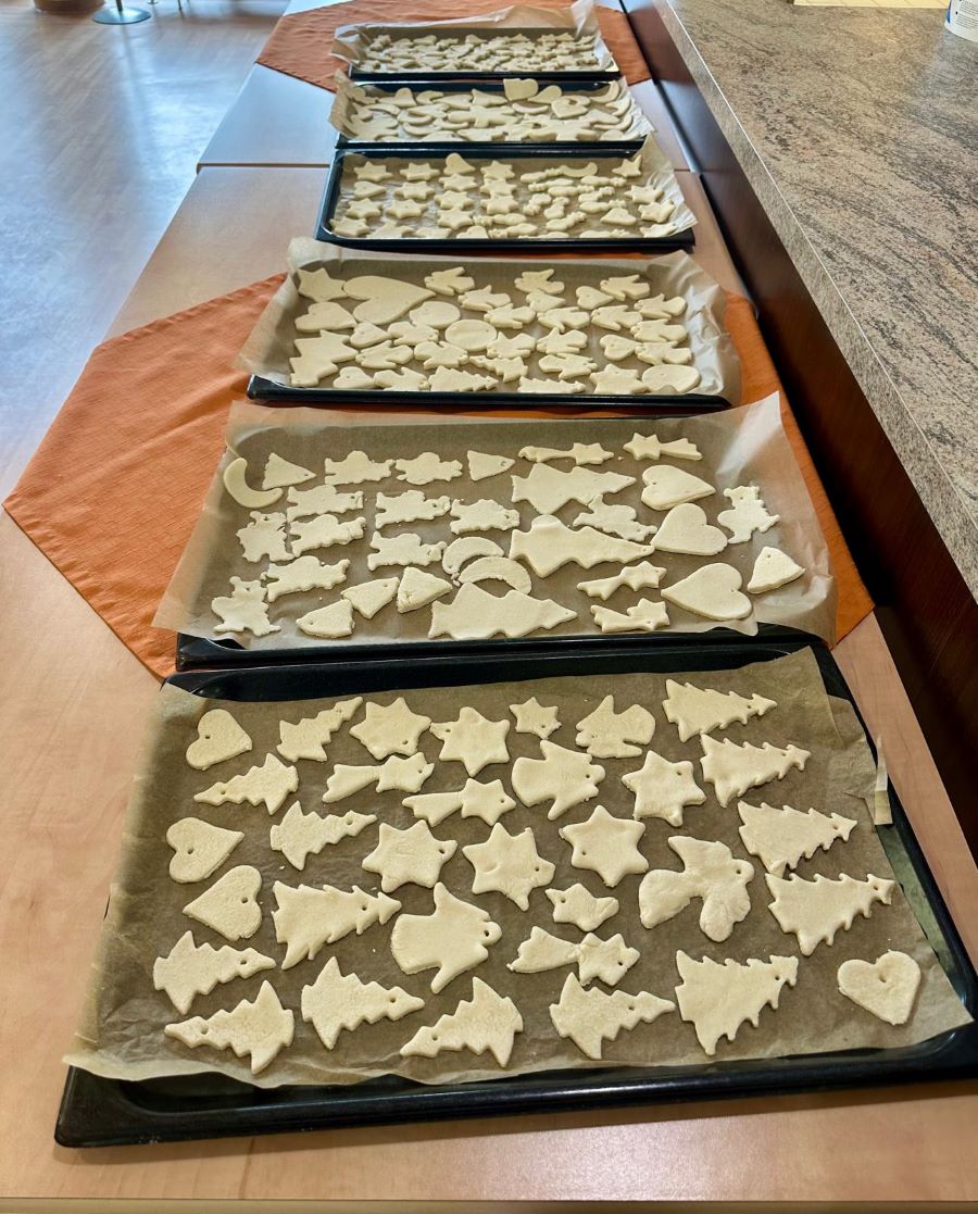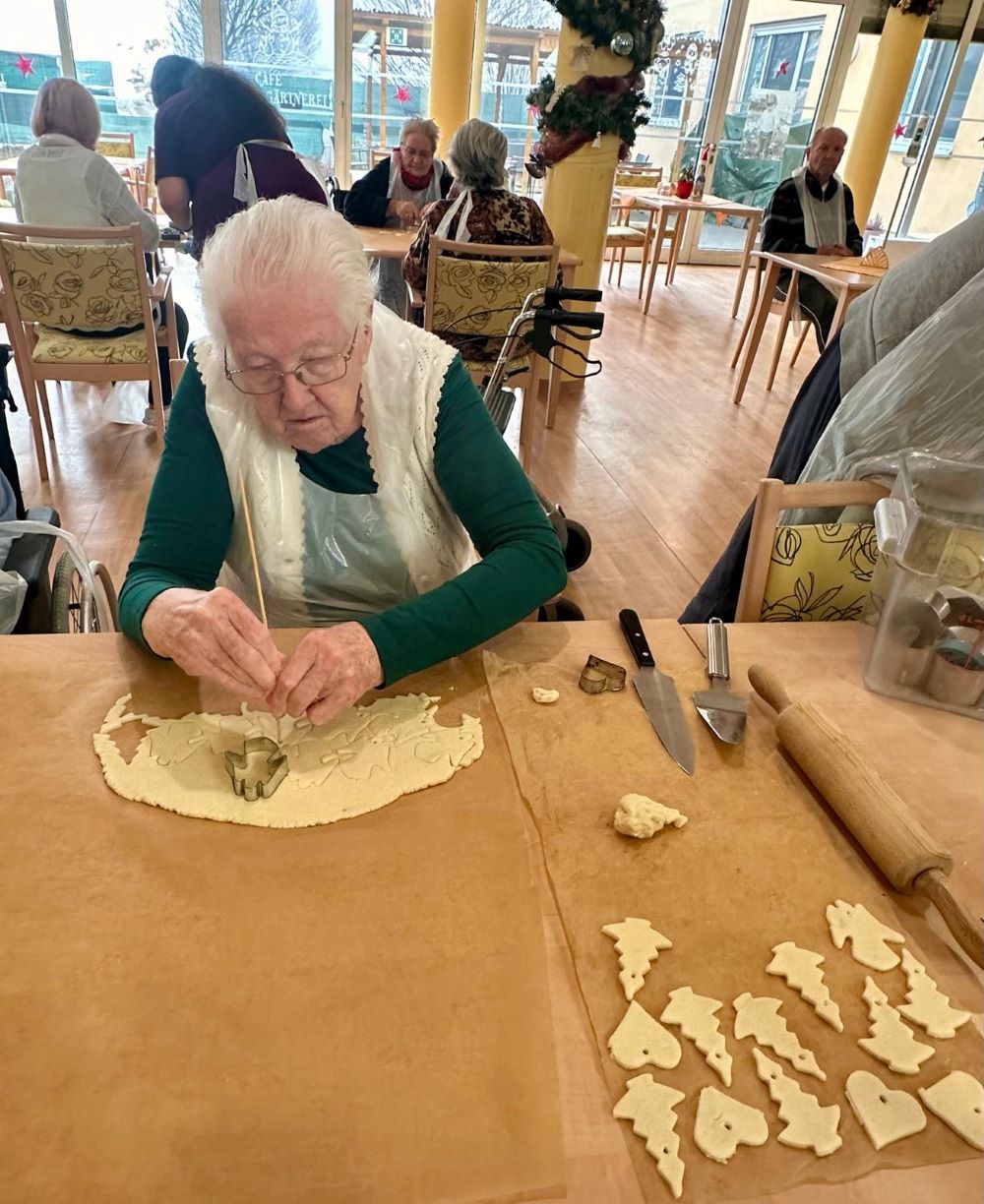 Im Seniorendomizil Haus Lukas wurde in den letzten Tagen fleißig gebastelt: Gemeinsam mit unserem Betreuungsteam fertigten unsere Bewohnerinnen und Bewohner liebevolle Anhänger aus Salzteig für den großen Weihnachtsbaum an.
