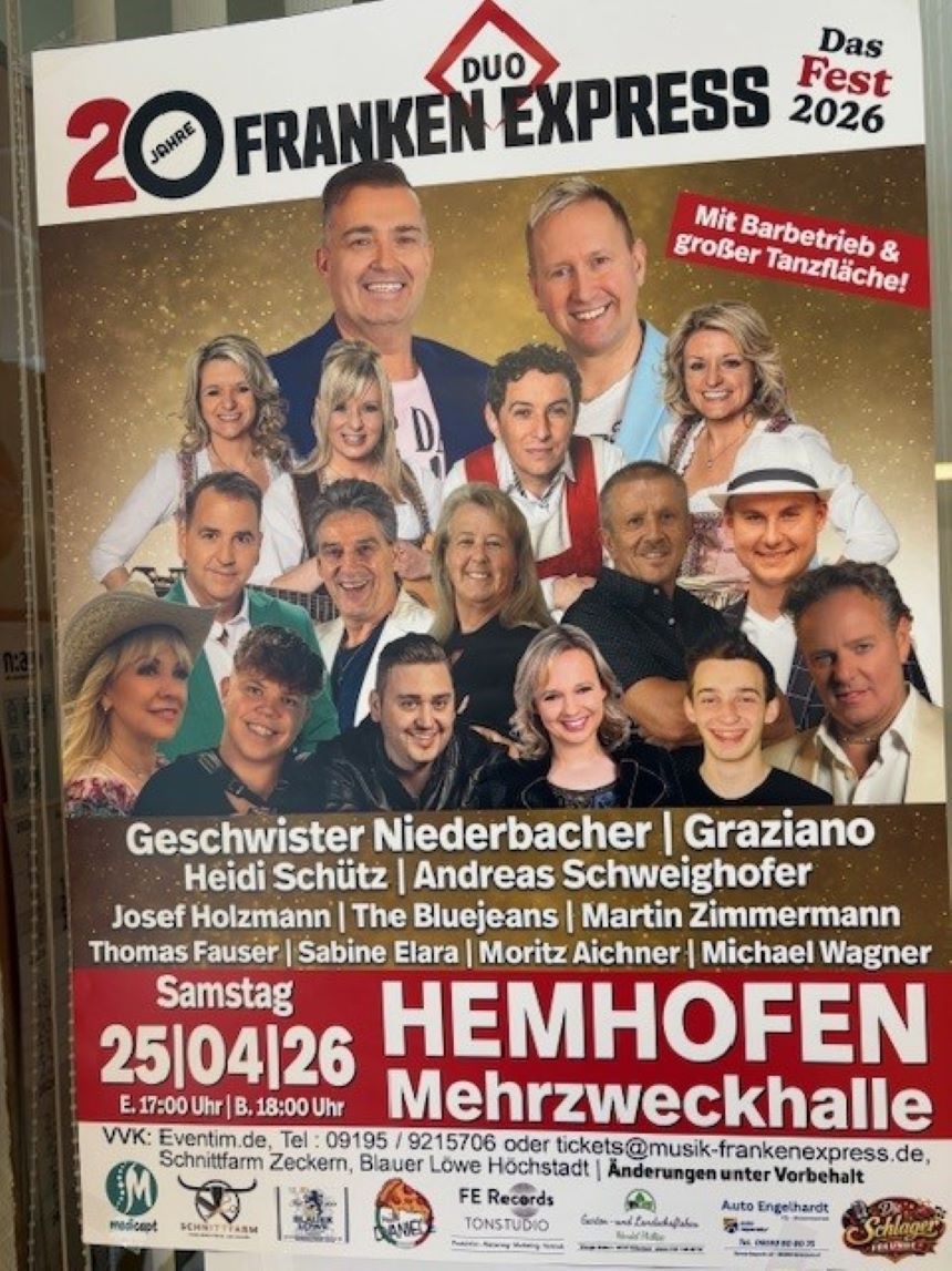 Einige Bewohnerinnen und Bewohner des Seniorendomizils Haus Raphael durften einen ganz besonderen Ausflug erleben: Gemeinsam ging es zur Veranstaltung „20 Jahre Franken Express“ in die Mehrzweckhalle nach...