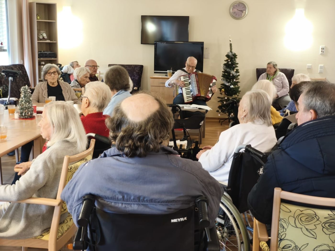 Am Samstag, den 20. Dezember 2025, durften wir im Seniorendomizil Haus Lukas erneut Herrn Schöller begrüßen. Er besucht unsere Einrichtung ehrenamtlich und bereitet unseren Bewohnerinnen und Bewohnern mit seiner Ziehharmonika immer wieder große Freude.