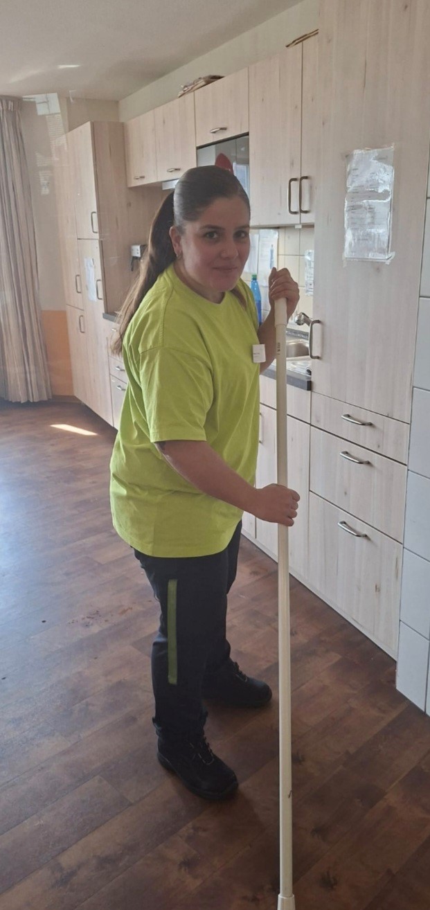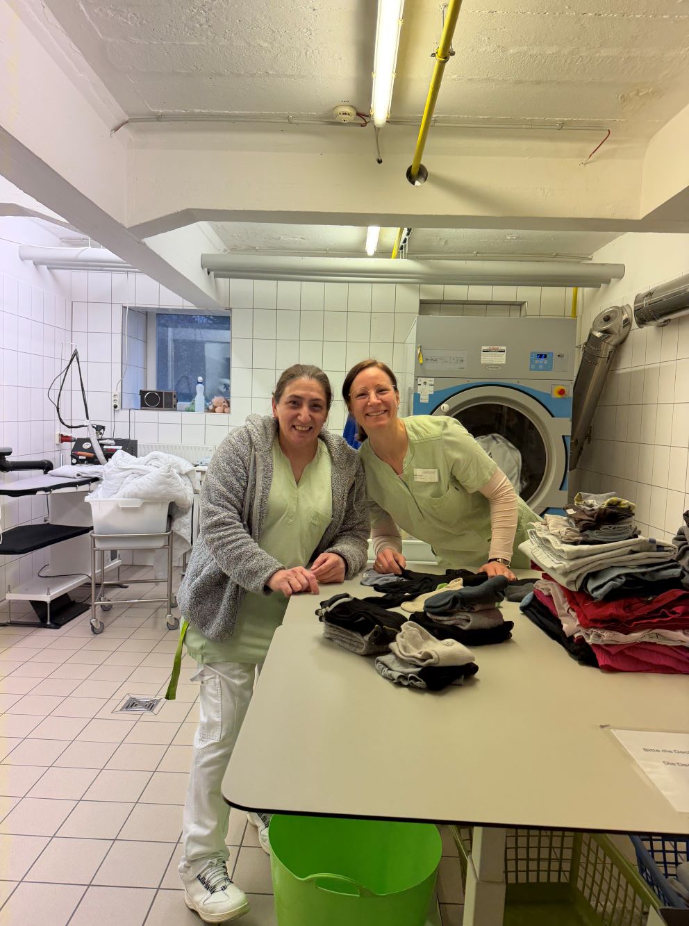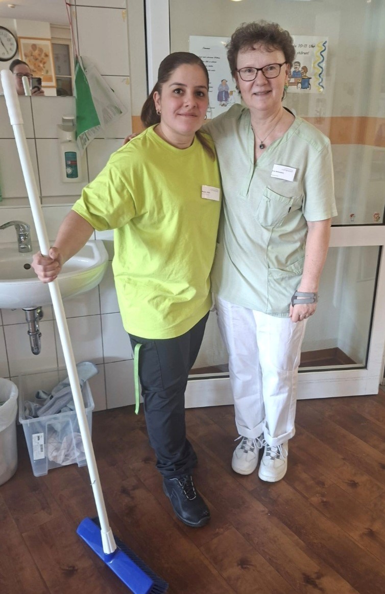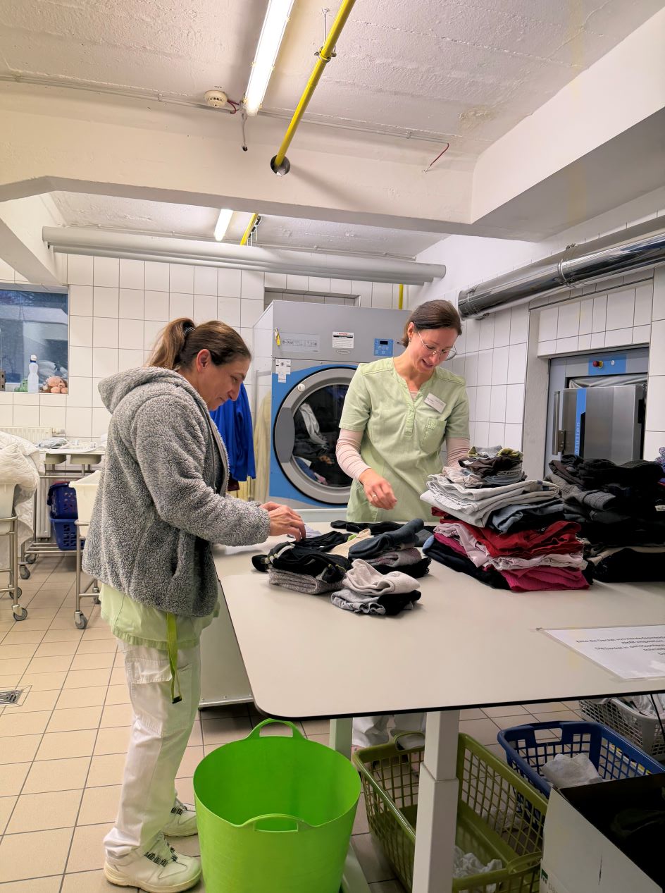 Einrichtungsleitung Sally Fuchs unterstützte in der Wäscherei gemeinsam mit Selma Celebi und bearbeitete über 100 kg Wäsche. Pflegedienstleiter Tugay Durduran hospitierte bei Rita Noack in der Verwaltung und nahm an einem Teamgespräch teil. Die stellvertretende Pflegedienstleitung Yvonne Gericke half in der Küche gemeinsam mit Küchenleitung Beyza Güze und Koch Tobias Weiß bei der Zubereitung von Speisen. Küchenleitung Beyza Güze wiederum begleitete Erika Baldassarre in der Hausreinigung, während Hauswirtschaftsleitung Marina Mück gemeinsam mit Haustechniker Matthias Kogel Reparaturen im Haus übernahm.