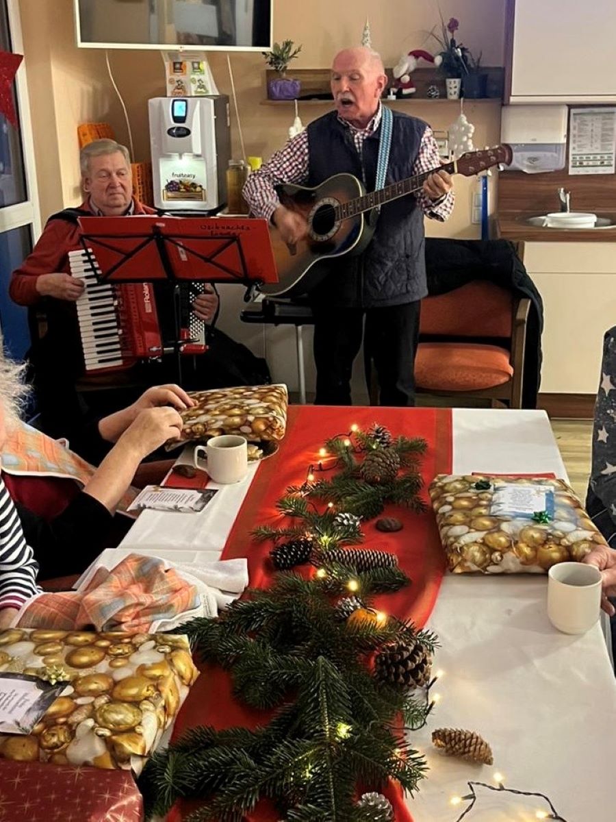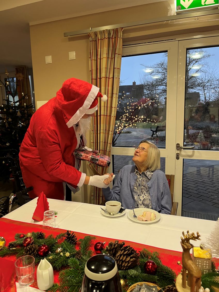 In der Seniorenresidenz Am Park wurde Weihnachten auf allen Wohnbereichen festlich gefeiert. Nach einem gemütlichen Kaffeetrinken sorgten musikalische Beiträge für stimmungsvolle Momente. Besinnliche Andachten luden zum Innehalten ein. Der Weihnachtsmann verteilte Geschenke und bei Keksen, Glühwein und Punsch wurde die gemeinsame Zeit genossen.