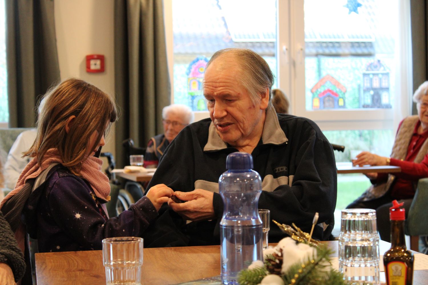 Gemeinsam wurden bekannte Weihnachtslieder wie „In der Weihnachtsbäckerei“ gesungen. Passend dazu hatten die Kinder selbst gebackene Plätzchen mitgebracht, die mutig und mit viel Freude von Hand zu Hand verteilt wurden. „Sehr lecker – sogar mit Haferflocken“, stellte eine Bewohnerin schmunzelnd fest.