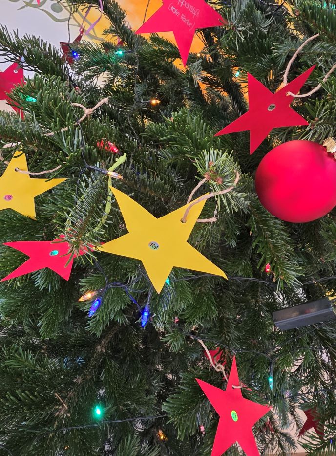 Jede Bewohnerin und jeder Bewohner durfte sich einen kleinen persönlichen Wunsch im Wert von 5 Euro überlegen. Diese Wünsche wurden auf liebevoll ausgeschnittene Sterne geschrieben und anschließend an den Wunschbaum gehängt. Die Idee dahinter: jedem einzelnen Menschen an Weihnachten einen besonderen Moment zu schenken und ein Strahlen ins Gesicht zu zaubern.